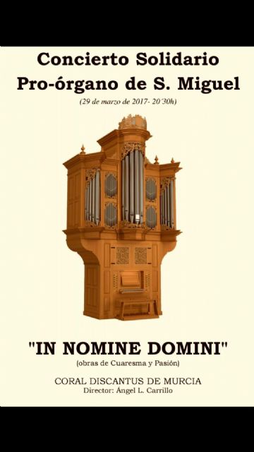 Esta noche, 29 de marzo, se celebrará un concierto de Cuaresma y Pasión, de autores españoles e italianos del siglo XVI al XX, a beneficio del futuro órgano de San Miguel, un valioso instrumento del que participa la Coral Discantus como patrocinador y también como propietarios de seis tubos, que estarán grabados con el nombre de la entidad.