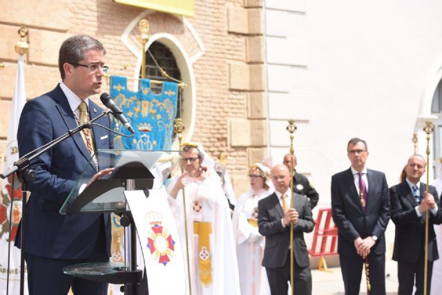 El Concejal de Empleo, Turismo y Cultura, Jesús Pacheco, ha pronunciado hoy el pregón de cierre de la Semana Santa de Murcia en la puerta de Santa Eulalia, con las imágenes presentes del titular, Cristo Resucitado, la Virgen Gloriosa y San Juan.