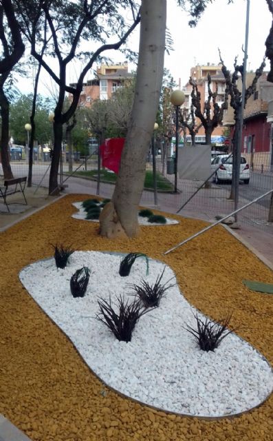 En concreto, explica el edil José Guillén, se han remodelado completamente los parterres del jardín sustituyendo los antiguos bordillos por unos más modernos, se ha mejorado la red de riego, colocado malla antihierba y grava de colores con chapón galvanizado para separar las distintas zonas.