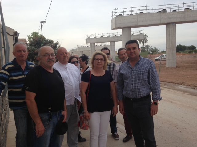 Acompañado de la vicepresidenta de la Junta Vecinal de Los Dolores, Loli Lacárcel, quien recordó que ya se han producido accidentes, el concejal asegura que, además, el nuevo puente tiene una pendiente muy pronunciada por facilitar el acceso a una industria de la zona, lo que también perjudica a los residentes.