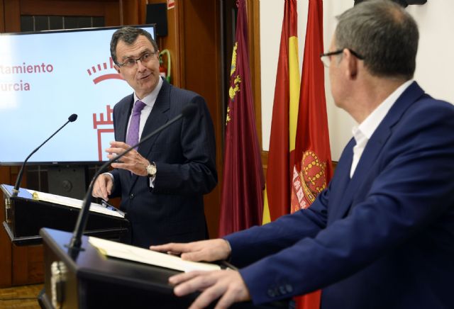 El alcalde de Murcia, José Ballesta, acompañado del concejal de Deportes y Salud, Felipe Coello, firmó hoy el convenio con el presidente de la Sociedad Murciana de Antropología, Pedro Martínez Cavero, para el desarrollo de los estudios sobre la historia cultural del Cementerio de Nuestro Padre Jesús, coincidiendo con el 130 aniversario de la primera inhumación que se llevó a cabo en el Camposanto municipal el 6 de junio de 1887.