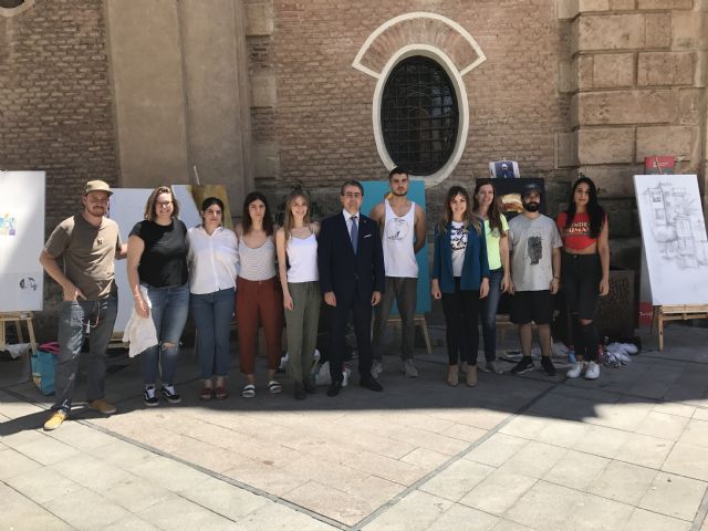 14 jóvenes estudiantes de Bellas Artes y finalistas del CreaMurcia de los últimos años han comenzado hoy a pintar los cuadros que formarán parte del museo al aire libre de la calle Santa Quiteria que estará disponible esta misma semana.