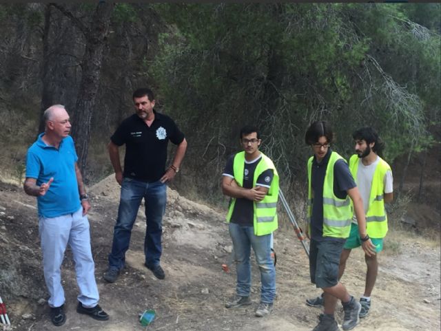 El concejal de Urbanismo, Medio Ambiente y Huerta, Antonio Navarro, acompañado del alcalde pedáneo de Torreagüera, Fulgencio Perona, ha visitado esta mañana con expertos el yacimiento arqueológico de la pedanía donde se está trabajando con el proyecto Monte Miravete.