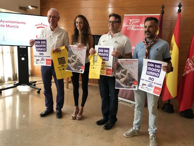 El concejal de Urbanismo, Medio Ambiente y Huerta, Antonio Navarro, ha presentado esta mañana el Día del Monte Limpio 2017 junto con el Presidente de la Federación de Montañismo de la Región de Murcia, Luis Ríos, y el Presidente de la Federación Scouts de Exploradores de Murcia (ASDE), Daniel López, acompañados por la Campeona de España de Marcha Nórdica, la murciana Sandra Ribes.