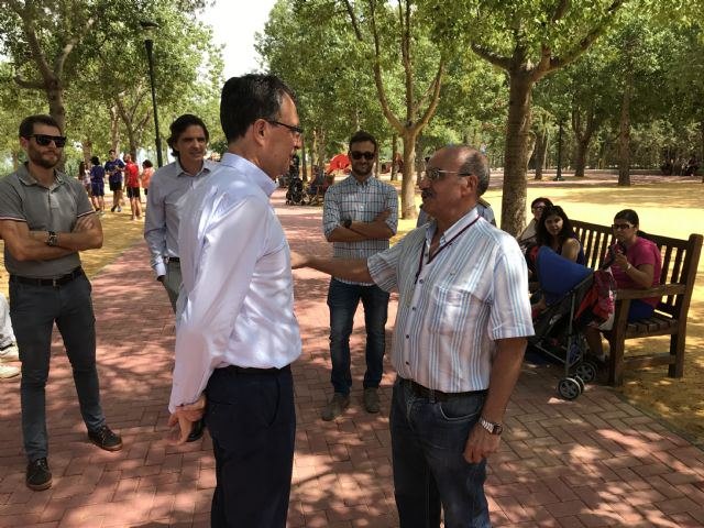 El alcalde de Murcia, José Ballesta, visitó hoy la explanada posterior del Santuario de la Fuensanta, donde el Ayuntamiento ha realizado trabajos de acondicionamiento del jardín, coincidiendo con la bajada de la Virgen de hoy a la ciudad y de cara a la Romería del día 12 de septiembre.