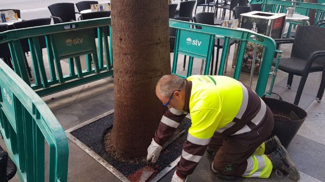 Siguiendo la máxima de la seguridad como prioridad, el Ayuntamiento está reformando, uno a uno, los alcorques de distintas arterias como la Avenida de la Libertad de Murcia, Santo Domingo, Gran Vía o la Plaza de las Flores.