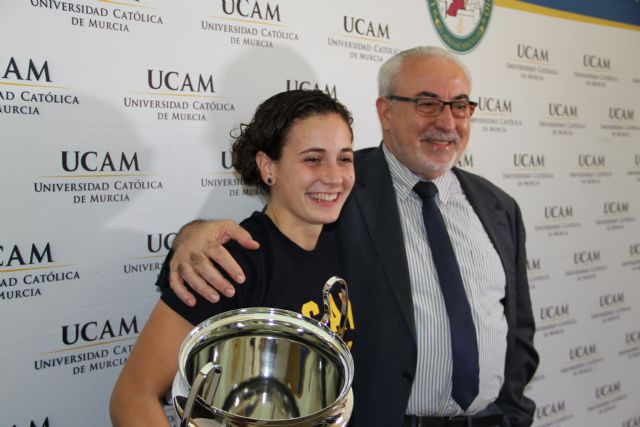 En este camino, uno de los apoyos que ha tenido Ana Carrasco, ha sido su propia Universidad y por ello no había querido dejar pasar la oportunidad de compartir la alegría de este triunfo con José Luis Mendoza, presidente de la UCAM: "Es un gran apoyo para mí y no sólo en los estudios, también en otros muchos aspectos así que estoy muy contenta de compartir con ellos este premio".