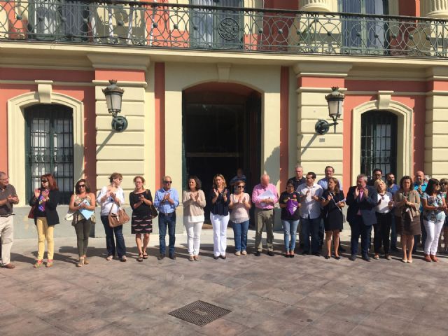 Representantes de todos los grupos municipales han mantenido un minuto de silencio a las puertas del Ayuntamiento de Murcia como motivo de condena y repulsa ante el asesinato de una joven ayer en Canteras (Cartagena). "Es un deber moral concentrarnos como señal de condena y ante este nuevo crimen machista. Es importante apelar a la unidad y el trabajo en red de jueces y fiscales, administraciones con recursos y cuerpos de seguridad, para proteger a las mujeres que están siendo víctimas de la violencia de género", ha declarado la concejala de Derechos Sociales, Conchita Ruiz.