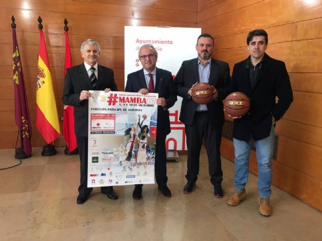 Felipe Coello, concejal de Deportes y Salud, ha presentado esta mañana junto con Alonso Gómez López, Director General de Deportes, con el representante de la Asociación Decyde, Fernando Zaplana, y con Juan Carlos García, de confiterías Maite, el torneo Masters Murcia Baloncesto ‘Mamba 2017’ que se celebrará los días 8, 9 y 10 de en los pabellones Príncipe de Asturias y de Santa María de Gracia.