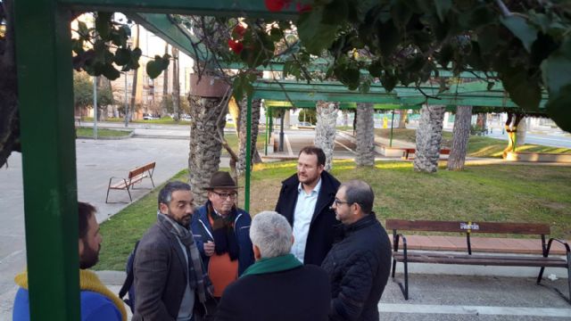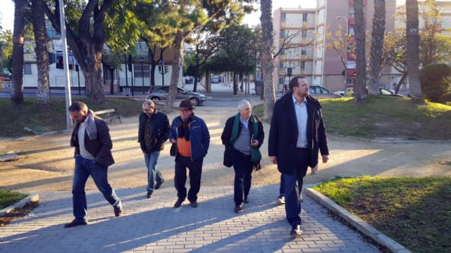 El concejal de Modernización, Calidad Urbana y Participación, José Guillén, acompañado por el presidente de la Junta de Distrito Este, Rafal Gómez, técnicos del Ayuntamiento y responsables de la empresa concesionaria STV han recorrido las principales zonas verdes del barrio de La Paz para conocer de primera mano las necesidades de sus vecinos.