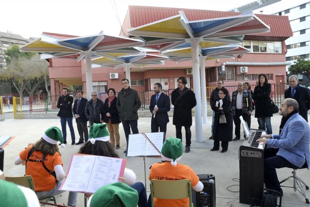 El Ayuntamiento de Murcia a través de la Concejalía de Educación, Relación con Universidades y Patrimonio, la puesta en marcha del Plan de Acción de Sombraje Escolar, para paliar los efectos del cambio climático en la población escolar. Unas actuaciones presentadas esta mañana por el Alcalde del municipio, José Ballesta, durante una visita al CEIP San Juan de Murcia.