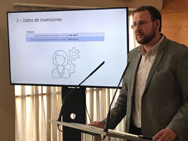 Al margen del gasto corriente, imprescindible para mantener la calidad de los servicios públicos, las juntas municipales realizaron inversiones por importe de 3.096.000 euros, mientras que dispone de 3,8 millones de euros más para gastar en 2018 procedentes del presupuesto del pasado año, que no pudieron financiar actuaciones debido a la demora en la aprobación del presupuesto del Ayuntamiento. Esto será posible porque, con el objetivo de no perder estos fondos, el Equipo de Gobierno aprobó una modificación administrativa para que cada pedanía pueda gastar ese dinero este año, evitando que se perdiera.