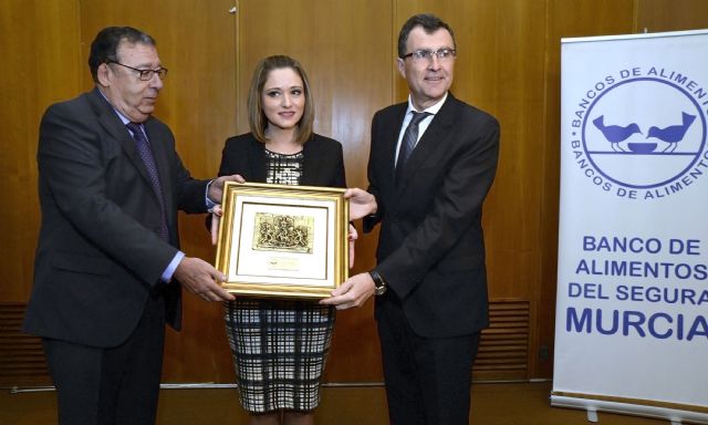 El alcalde de Murcia, José Ballesta, junto al presidente del Banco de Alimentos del Segura, Bonifacio Fernández, entregaron hoy el premio Matrona de Murcia 2017 a la empresa Mercadona, “por su generosa colaboración a lo largo de los últimos años, especialmente, durante las grandes recogidas”. En el acto también se hizo entrega de las Insignias de Plata del Banco de Alimentos a cuatro voluntarios de esta organización solidaria.