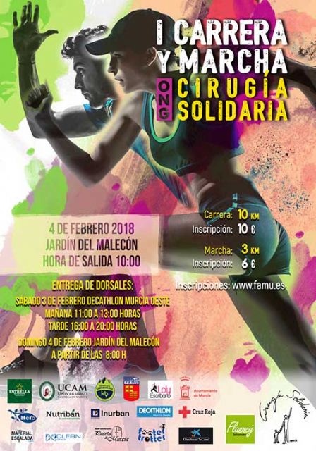 La ONG Cirugía Solidaria organiza la I Carrera y Marcha ONG Cirugía Solidaria 10k y 3k, en colaboración con la Federación Murciana de Atletismo y con la Concejalía de Deportes y Salud del Ayuntamiento de Murcia en la que van a participar más de 400 corredores.