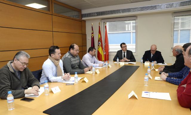 El alcalde de Murcia, José Ballesta, junto al concejal de Hacienda y Contratación, Eduardo Martínez-Oliva, mantuvieron esta mañana una reunión con el presidente de la cooperativa Radio Taxi, Sergio Navarro, y un grupo de taxistas murcianos, en la que se abordó la prestación de servicios en el Aeropuerto Internacional de la Región de Murcia, ubicado en la pedanía murciana de Corvera.