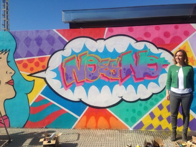 La Concejala de Derechos Sociales y Cooperación al Desarrollo del Ayuntamiento de Murcia, Conchita Ruiz, ha visitado esta mañana el IES Aljada para asistir a la clausura del Taller "El Amor nos sienta bien" y la inauguración de un gran mural reivindicativo en favor de la igualdad entre hombres y mujeres.