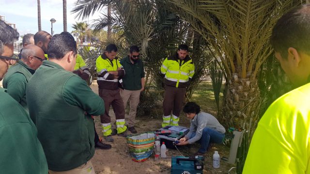 "Lo que pretendemos es conseguir que los responsables de las distintas zonas verdes de Murcia y pedanías sepan cómo detectar y aplicar técnicas novedosas como la endoterapia, por ejemplo en pinos, eucaliptus o palmeras, entre otros", explica el edil de Modernización de la Administración y Desarrollo Urbano, José Guillén.