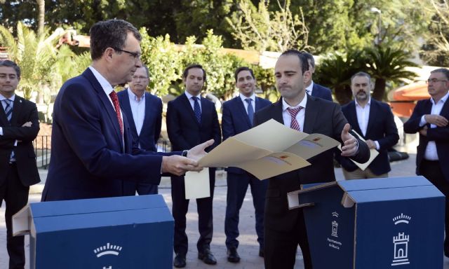 Durante la presentación del Programa de las Fiestas de Primavera, en la que estuvieron presentes miembros de la Corporación municipal y los distintos colectivos festeros, José Ballesta firmó junto a los representantes de destacadas empresas murcianas el convenio de colaboración por el que estas compañías patrocinan los eventos que integran el programa y financian su celebración.
