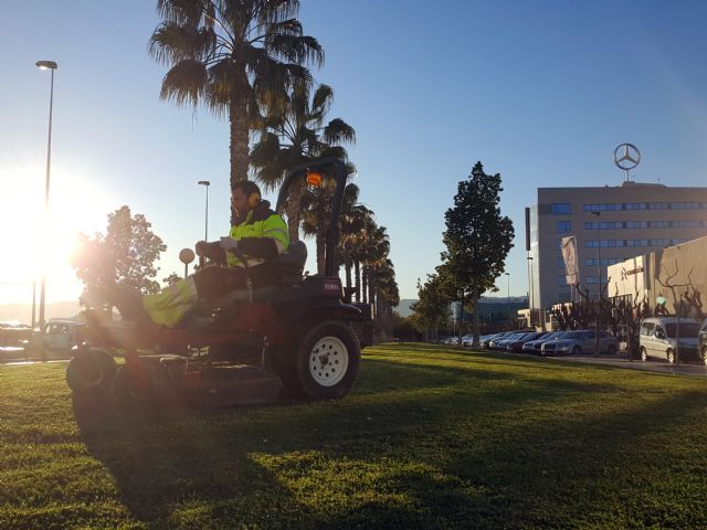 El Ayuntamiento de Murcia, de la mano de la empresa concesionaria STV, está llevando a cabo la dotación de ‘alimento' y siega para los más de 700.000 metros cuadrados de praderas de césped existentes.