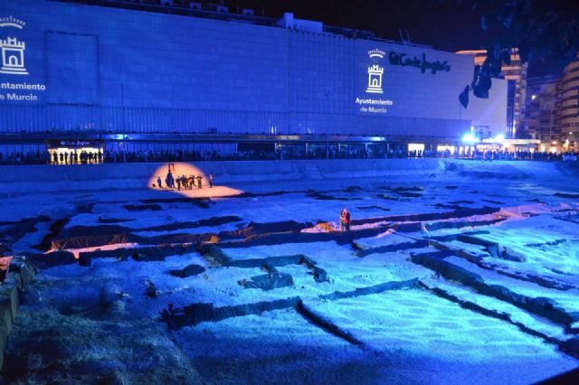 Este espectáculo artístico-didáctico de luces, música y teatro ha narrado los orígenes de la ciudad, los secretos del yacimiento y ha recorrido la historia de Murcia desde su fundación por Abderramán II, con personajes destacados de la Murcia medieval como el Rey Lobo o Alfonso X el Sabio.