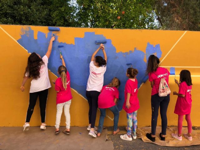 Los más pequeños han realizado murales, dirigidos y coordinados por la Oficina del Grafiti junto con las Brigadas Cívicas, para dar un toque de color en el centro de esta pedanía que se ha volcado con el proyecto ADN Conecta.
