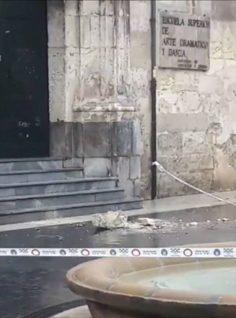 Ayer se desprendió una parte de la cornisa del Conservatorio de Danza de Murcia, donde se desarrollan actividades tan importantes como "el flamenco" (arte considerado Patrimonio Inmaterial de la Humanidad por la UNESCO).