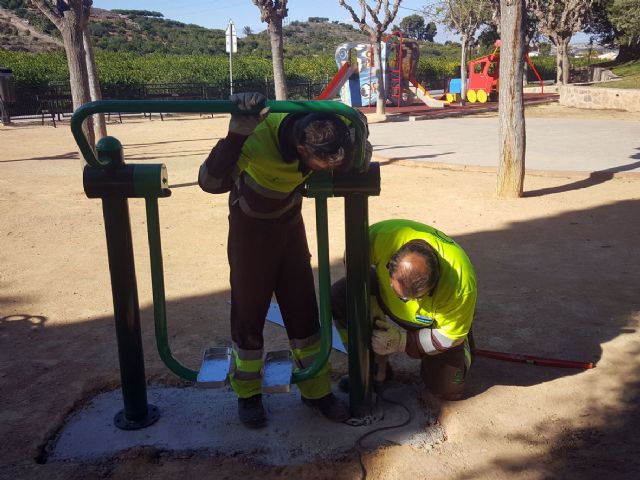 Los nuevos juegos se han instalado en el Jardín de la Cruz de la pedanía murciana y pretenden así ampliar la oferta actual para los más mayores, convirtiendo las áreas verdes en espacio de encuentro y deporte.