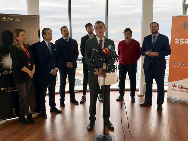 La gran inauguración del sábado 1 comenzará a las 18.30 horas, con un espectáculo de música, fuegos artificiales, proyecciones de luz y actuaciones musicales en directo. “Nos acompañarán los grupos murcianos Funambulista y Belter Souls, más una sorpresa que desvelaremos en los próximos días”, apuntó el alcalde, quien estuvo acompañado en la presentación de miembros de la Corporación municipal y representantes de las empresas patrocinadoras de la inauguración del Árbol: Cablemurcia, Grupo Zambudio, Televisión Murciana y Hospital Mesa del Castillo.