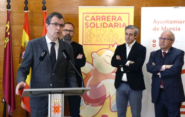 El alcalde de Murcia, José Ballesta, el concejal de Deportes y Salud, Felipe Coello, el director general de 7RM, Antonio Peñarrubia, y el director general Astrade, José Manuel Santos, han presentado esta mañana la II edición de la Carrera Solidaria que organiza 7 Televisión Región de Murcia, en colaboración con el Ayuntamiento, y que se celebrará este próximo domingo, 13 de enero.