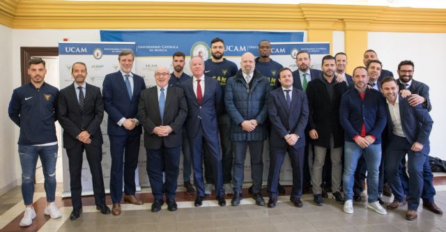 La firma del convenio ha tenido lugar en la Sala Capitular de la UCAM. Un contrato de tres partes que han protagonizado el Presidente de la Universidad Católica San Antonio de Murcia y, por consiguiente, del UCAM Murcia CB y el UCAM Murcia CF, José Luis Mendoza; el Director General de Willis Towers Watson, Alberto Portillo; y el Director de Vida y Pensiones de Caser Seguros, Juan José Cotorruelo.