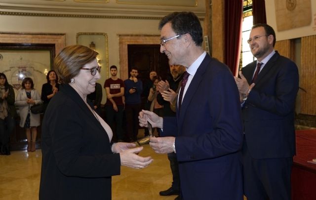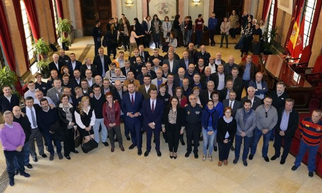 El alcalde de Murcia, José Ballesta, junto al concejal de Modernización de la Administración y Desarrollo Urbano, José Guillén, y la concejal de Tráfico, Seguridad y Protección Ciudadana, Lola Sánchez, presidió hoy el acto de homenaje a los Policías Locales que se jubilan este año, una ocasión que el alcalde quiso aprovechar para informar sobre la nueva convocatoria de plazas de agente en el municipio de Murcia, que tendrá lugar este mismo año.