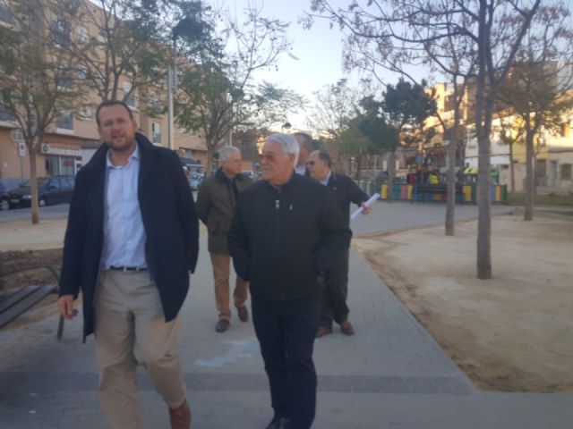 Durante la visita a la pedanía murciana, también se han visitado numerosos parques, entre ellos el situado en la calle Príncipe Felipe, donde está previsto colocar distintas palmeras y mejorar el suelo que conllevará la colocación del conocido albero sevillano.