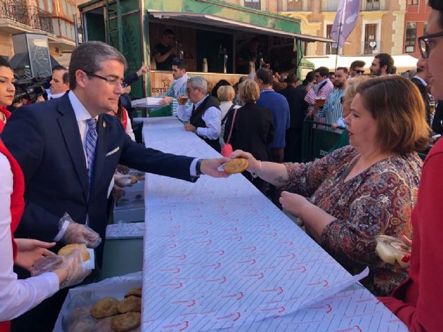 Tras la presentación, celebrada en la Cámara de Comercio, se ha celebrado una firma de carteles y una degustación de pasteles de carne en la Plaza del Romea