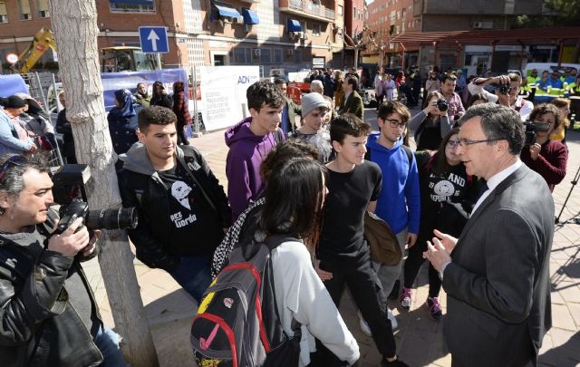 El alcalde de Murcia, José Ballesta, acompañado por miembros de la Corporación municipal, asistió hoy al inicio de la Fase de Agitación del proyecto ADN-El Carmen, una iniciativa revolucionaria que cuenta con la participación directa de los vecinos y la colaboración de más de 50 asociaciones y colectivos sociales del barrio.