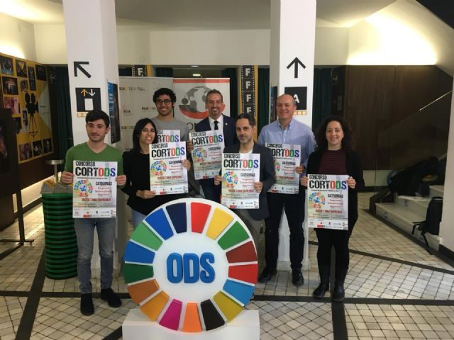 La Coordinadora de ONGD de la Región de Murcia ha presentado esta mañana en la Filmoteca de la Región de Murcia el Concurso Nacional de Cortos sobre los Objetivos de Desarrollo Sostenible, un certamen que cuenta con la colaboración de la Universidad de Murcia. La presentación ha contado con la participación del director general de Acción Exterior, Unión Europea y Cooperación de la Región de Murcia, Manuel Pleguezuelo; el Delegado del Rector para Responsabilidad Social y Transparencia de la UMU, Longinos Marín; y con representantes del jurado del concurso como el director de la Filmoteca Regional, Ángel Cruz; la coordinadora del Comité Autonómico de UNICEF Región de Murcia, Carolina Galván; la coordinadora de Medios Audiovisuales de la UMU, Maite Pellicer; el reconocido profesional de la comunicación audiovisual, Juan Poveda, y el presidente de la coordinadora de ONGD de la Región de Murcia, Moisés Navarro.