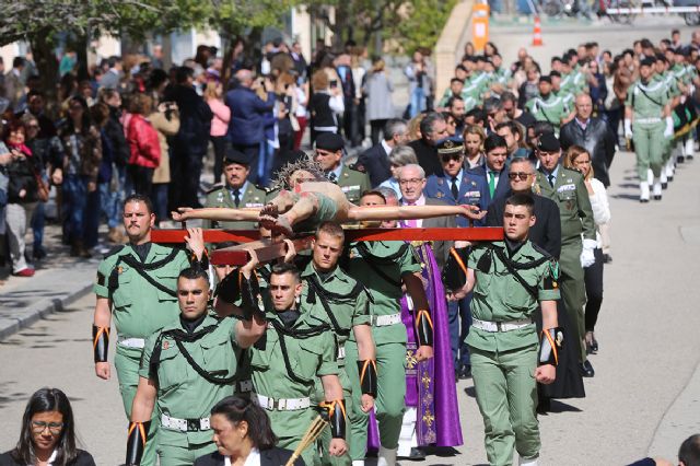 Momentos emotivos los que se han vivido esta mañana en la Universidad Católica de Murcia. A las 11 de la mañana el Cristo de los Estudiantes salía del Templo del Monasterio de Los Jerónimos a hombros del Regimiento de Infantería de Zaragoza n° 5 de paracaidistas, para desfilar en procesión por el Campus de la UCAM. Se trata de la primera vez que se celebra este acto en la Universidad, en el que también ha desfilado la banda militar. Asimismo, han acompañado a la talla José Luis Mendoza, presidente de la UCAM, oficiales del Regimiento y miembros de la comunidad universitaria. Durante la procesión, se ha realizado una oración por los miembros de las fuerzas armadas en misiones internacionales de paz.