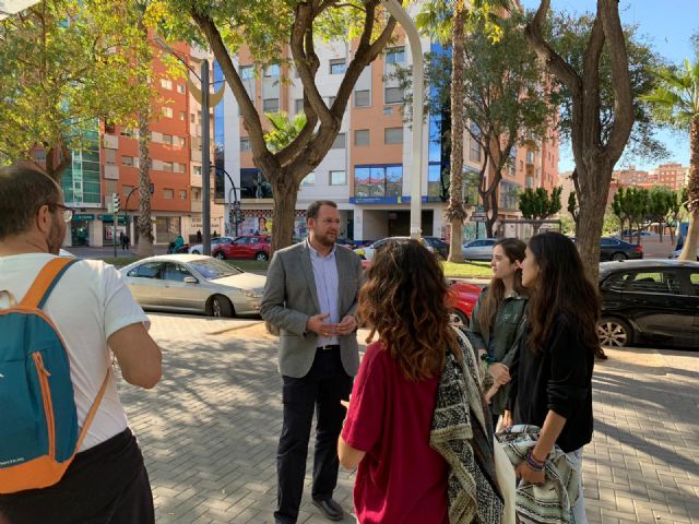 El concejal de Modernización de la Administración y Desarrollo Urbano, José Guillén, visita el taller de bioconstrucción con caña cuyo objetivo es el desarrollo de una de las instalaciones para estos días de fiestas.