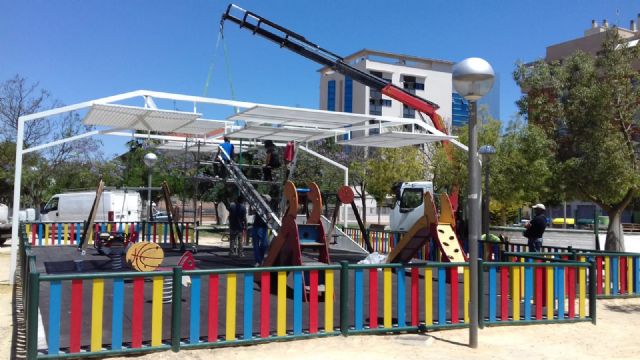 El municipio cuenta con cuatro nuevas pérgolas que dan sombra a zonas de juegos infantiles. El Servicio de Parques y Jardines, dependiente de la Concejalía de Modernización de la Administración y Desarrollo Urbano, que dirige José Guillén, ha finalizado la obra de instalación de sombraje en los parques infantiles de la calle Jorge Manrique en el Infante, de la Calle Músico Francisco Cebrián, en El Ranero y de la calle Iniestas y del Paseo de los Regulares de Melilla (Santiago y Zaraíche)