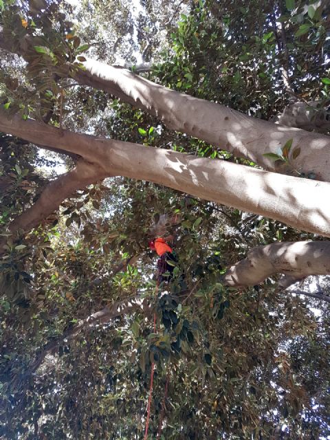 El objetivo es comprobar si el calor de estos últimos días ha podido provocar alguna fisura en las ramas de estos ejemplares singulares, si hay algún posible desgarro, inserciones ocultas o síntomas de deshidratación. ‘En caso de detectar algún problema se procederá a quitar la rama dañada, ya que para el Ayuntamiento lo primero es la seguridad de todos los murcianos que cada día usan este céntrico jardín de Floridablanca”, explica el edil de Desarrollo Urbano y Modernización de la Administración, José Guillén.