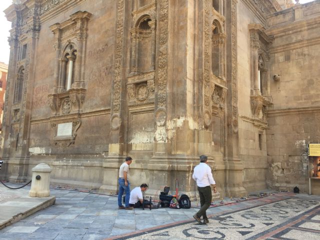 Investigadores de la Universidad Politécnica de Cartagena (UPCT) están tomando medidas estos días en el interior y el exterior de la Catedral de Murcia para conocer cómo sería la interacción suelo-estructura en caso de terremoto.