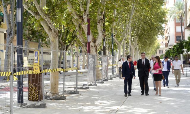“El ritmo se los trabajos avanza a pleno rendimiento por lo que este otoño completaremos y pondremos en servicio el total de los 15.000 m2 que conforman este nuevo bulevar en el corazón de la ciudad, que se constituye como un punto de encuentro social y familiar, patrimonio de todos los murcianos”, informó José Ballesta.