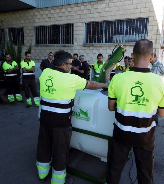 “Entre sus funciones, la atomizadora sirve para atacar de una manera más eficaz las distintas plagas que pueden afectar a estos ejemplares”, destaca el concejal de Desarrollo Urbano y Modernización de la Administración, José Guillén.