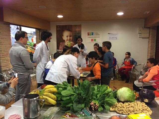 Más de 3.000 alumnos aprenden a comprar, cocinar y comer cada curso escolar en el taller del Aula de la Salud, los Sentidos y la Sostenibilidad, de la Plaza de Abastos de Verónicas, que gestiona la Concejalía de Deportes y Salud.