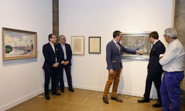 El alcalde de Murcia, José Ballesta, acompañado del concejal de Cultura y Recuperación del Patrimonio, Jesús Pacheco, el presidente de la Fundación Antonio Campillo, Luis Miguel García de Andrés, el comisario de la exposición y legatario de Antonio Campillo, Juan Pérez Ferra, y el autor de los textos y libro conmemorativo de la muestra, Martín Páez, presentaron esta mañana ‘París Vivant, de Montmartre a Montparnass’, la exposición que recupera los años de inspiración colectiva y ebullición artística de París, conformada por 67 cuadros, entre los que se incluyen dos dibujos de Modigliani, así como 3 esculturas. La muestra se inaugura esta tarde, a las 20 horas, en el Palacio Almudí.