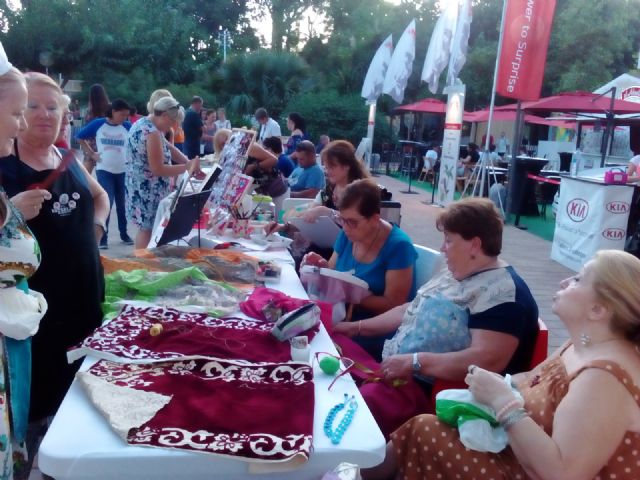 Lunes, día 16 de septiembre. Talleres: Alfarería murciana El Poveo. Bordados tradicionales, Ana María Baeza. Cosmética, J. Elena Hernández. Restauración, José Antonio Campos. Marquetería, Antonio Pérez, Restauración muebles, "Pátina Restauración". Pintura, Loli Sanz. pintura en seda, Manoli Pérez Cayuela.