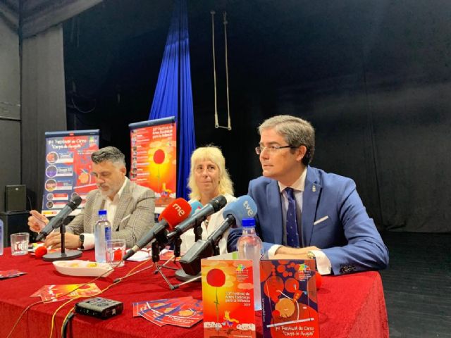 El concejal de Cultura y Recuperación del Patrimonio, Jesús Pacheco, ha asistido esta mañana, junto a Juan Antonio Lorca Sánchez, director general del Instituto de las Industrias Culturales y de las Artes de la Región de Murcia, y Mª José Astillero, presidenta de la Fundación Pupaclown, a la presentación de la programación del 7º Festival de Circo Social Carpa de Acogida y del 10º Festival de Artes Escénicas para la Infancia de la Fundación Pupaclown, que se extenderá hasta el próximo mes de diciembre.