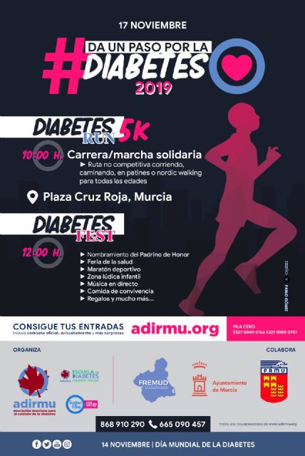 El domingo 17 salimos a la calle a #DAR UN PASO POR LA DIABETES. En esta edición, incorporamos LA DIABETES RUN, una carrera solidaria participativa y no competitiva, que podrá realizarse corriendo, andando, patinando, nordic walking, marchando…, y para todas las edades.