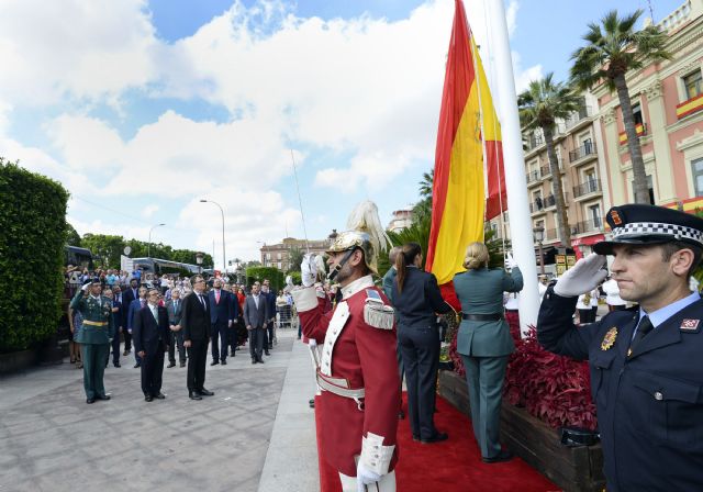 La Glorieta ha acogido esta mañana el izado de la bandera nacional, acto organizado por el Ayuntamiento de Murcia para celebrar el Día de la Fiesta Nacional.