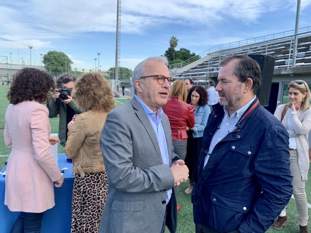 El concejal de Deportes y Salud, Felipe Coello, y la presidenta de Adirmu (Asociación Murciana para el Cuidado de la Diabetes), Asunción Sáez, han presentado hoy la iniciativa por la que las instalaciones deportivas municipales van a ser diabético-seguras, gracias a la instalación de unos kits de glucómetros