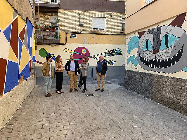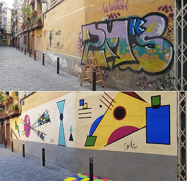La Oficina del Grafiti, puesta en marcha gracias a la colaboración entre la Concejalía de Movilidad Sostenible y Juventud y Ferrovial Servicios, ha renovado el eje de la calle Angustias del barrio de San Antolín.